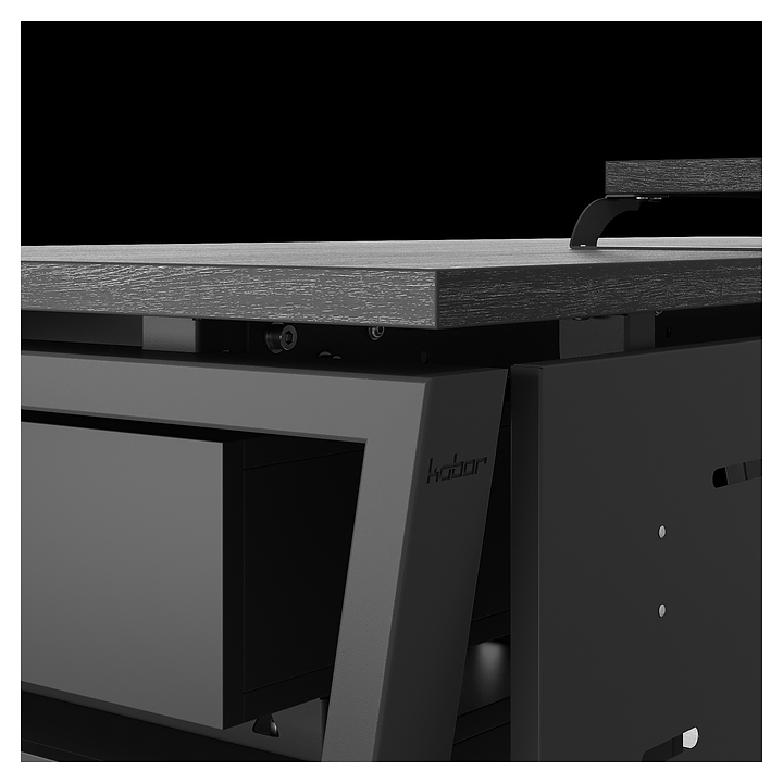 Офисный стол Кобор OTR-160/70 black/glazed используется в офисных помещениях и кабинетах руководителей. Модель оснащена опорами в форме обратной трапеции. Каркас выполнен из металла, выкрашенного в цвет черный муар (RAL9005), столешница – из ламинированной древесно-стружечной плиты (ЛДСП) цвета черный дуб (H3178 ST37). Опции (заказываются отдельно):