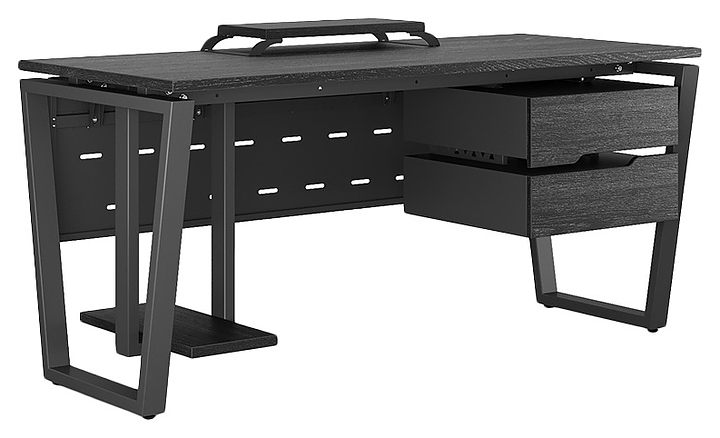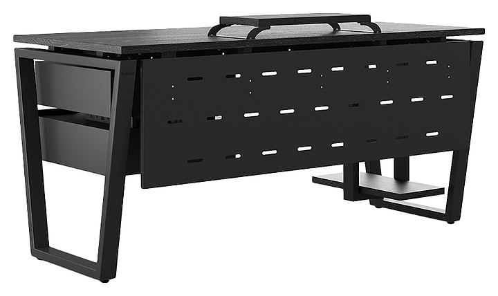 Офисный стол Кобор OTR-160/80 black/glazed используется в офисных помещениях и кабинетах руководителей. Модель оснащена опорами в форме обратной трапеции. Каркас выполнен из металла, выкрашенного в цвет черный муар (RAL9005), столешница – из ламинированной древесно-стружечной плиты (ЛДСП) цвета черный дуб (H3178 ST37). Опции (заказываются отдельно):