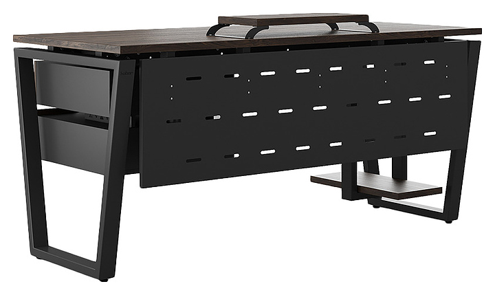 Офисный стол Кобор OTR-100/70 black/charlston используется в офисных помещениях и кабинетах руководителей. Модель оснащена опорами в форме обратной трапеции. Каркас выполнен из металла, выкрашенного в цвет черный муар (RAL9005), столешница – из ламинированной древесно-стружечной плиты (ЛДСП) цвета дуб чарльстон (H3154 ST36). Опции (заказываются отдельно):