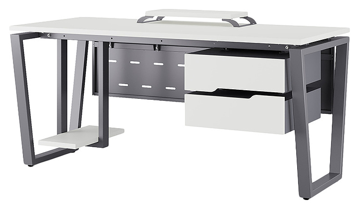 Офисный стол Кобор OTR-160/70 graphite/premium используется в офисных помещениях и кабинетах руководителей. Модель оснащена опорами в форме обратной трапеции. Каркас выполнен из металла, выкрашенного в цвет графит муар (RAL7024), столешница – из ламинированной древесно-стружечной плиты (ЛДСП) цвета белый премиум (W1000 ST9). Опции (заказываются отдельно):