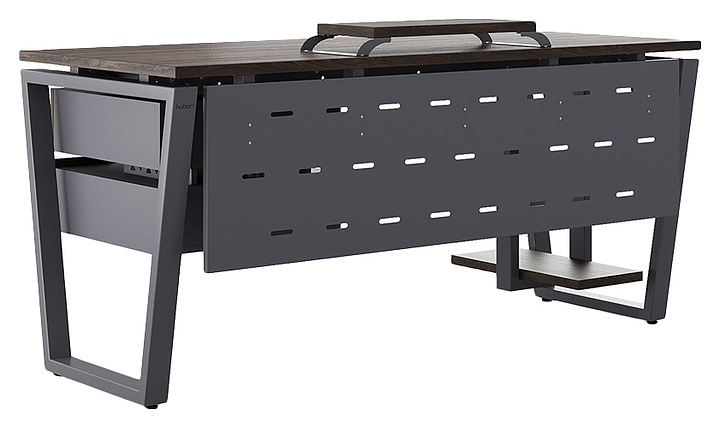 Офисный стол Кобор OTR-120/60 graphite/charlston используется в офисных помещениях и кабинетах руководителей. Модель оснащена опорами в форме обратной трапеции. Каркас выполнен из металла, выкрашенного в цвет графит муар (RAL7024), столешница – из ламинированной древесно-стружечной плиты (ЛДСП) цвета дуб чарльстон (H3154 ST36). Опции (заказываются отдельно):