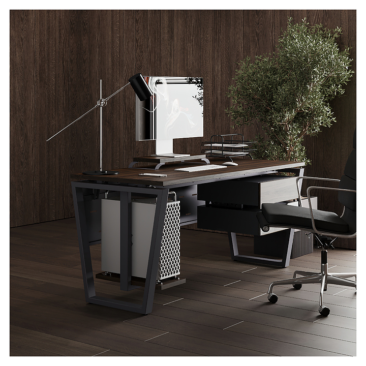 Офисный стол Кобор OTR-120/80 graphite/charlston используется в офисных помещениях и кабинетах руководителей. Модель оснащена опорами в форме обратной трапеции. Каркас выполнен из металла, выкрашенного в цвет графит муар (RAL7024), столешница – из ламинированной древесно-стружечной плиты (ЛДСП) цвета дуб чарльстон (H3154 ST36). Опции (заказываются отдельно):