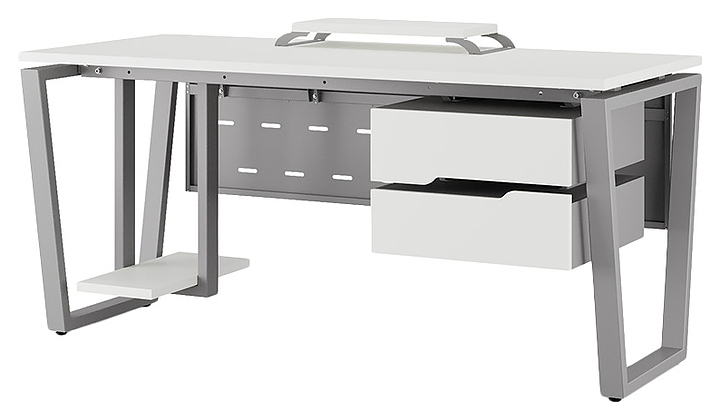 Офисный стол Кобор OTR-180/80 aluminum/premium используется в офисных помещениях и кабинетах руководителей. Модель оснащена опорами в форме обратной трапеции. Каркас выполнен из металла, выкрашенного в цвет алюминиевый металлик (RAL9006), столешница – из ламинированной древесно-стружечной плиты (ЛДСП) цвета белый премиум (W1000 ST9). Опции (заказываются отдельно):
