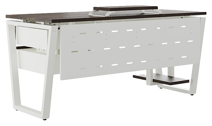 Офисный стол Кобор OTR-160/80 white/charlston используется в офисных помещениях и кабинетах руководителей. Модель оснащена опорами в форме обратной трапеции. Каркас выполнен из металла, выкрашенного в цвет белый муар (RAL9016), столешница – из ламинированной древесно-стружечной плиты (ЛДСП) цвета дуб чарльстон (H3154 ST36). Опции (заказываются отдельно):