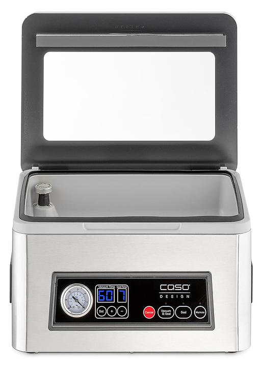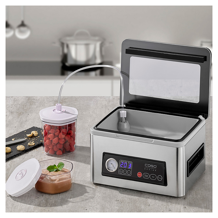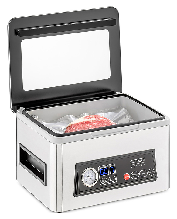 Вакууматор CASO VacuChef 50 используется в частных домах, квартирах, отелях и офисах для упаковки в вакуум мяса, рыбы, овощей, фруктов и домашних заготовок в пакетах для увеличения срока хранения. Модель оснащена сенсорной панелью управления. Корпус выполнен из нержавеющей стали, крышка - из прочного закаленного стекла. В комплект поставки входит 30 пакетов 28 x 25 см, запасной уплотнитель и вакуумный шланг. Особенности: