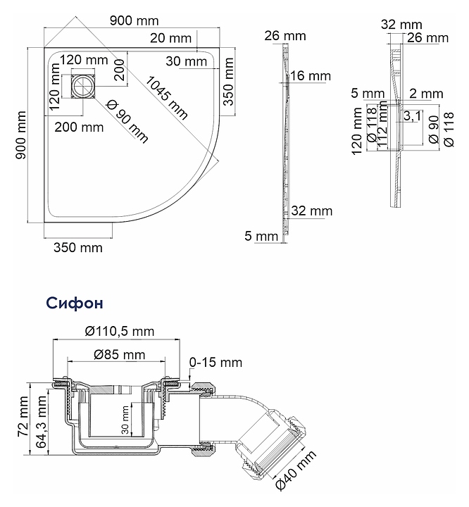 Душевой поддон Wasserkraft Main 41T01 предназначен для использования с душевыми уголками. Благодаря конструкции в форме четверти круга модель можно вписать даже в ванные комнаты небольшой площади. Изделие выполнено из стеклопластика, который имеет высокие эксплуатационное характеристики, не "усаживается", имеет термическую и коррозийную стойкость. В комплект поставки входят сифон, заглушка из нержавеющей стали и заглушка SMC (стеклопластик). Особенности:
