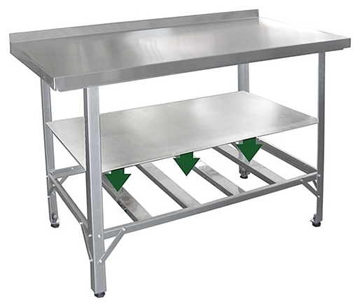 Кухонная полка ПищТех ЦК-СРО, СРО(б) 1200х600 предназначена для установки поверх полки-решетки производственных столов и хранения посуды, инвентаря и сухих продуктов на предприятиях общественного питания и торговли. Изделие выполнено из оцинкованной стали. Характеристики: