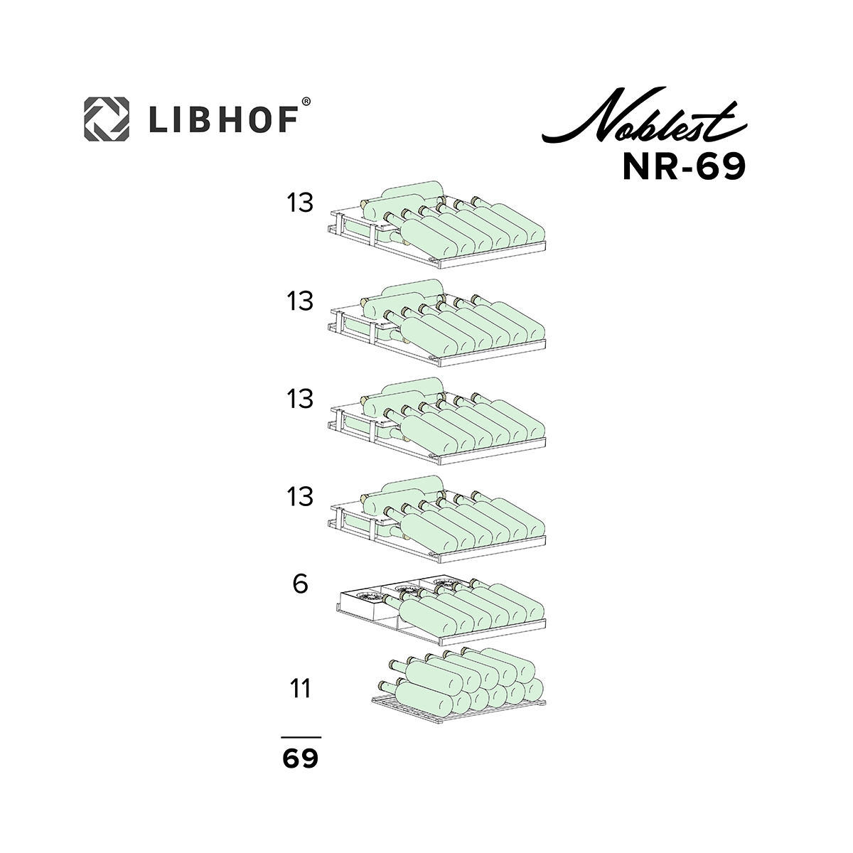 Винный шкаф Libhof Noblest NR-69 Black предназначен для хранения при оптимальных условиях бутилированного вина различных сортов в барах, ресторанах, специализированных магазинах, подсобных складских помещениях, а также в домашних условиях. Модель оснащена монотемпературной холодильной камерой, распашной дверью на внешних петлях, прозрачным обзорным стеклом, внешней сенсорной панелью управления и дисплеем индикации. Корпус выполнен из древесины американского дуба с покрытием черного цвета, фурнитура – из металла цвета бронзы с патиной, съемные полки – из массива буковой древесины. Комплектация: