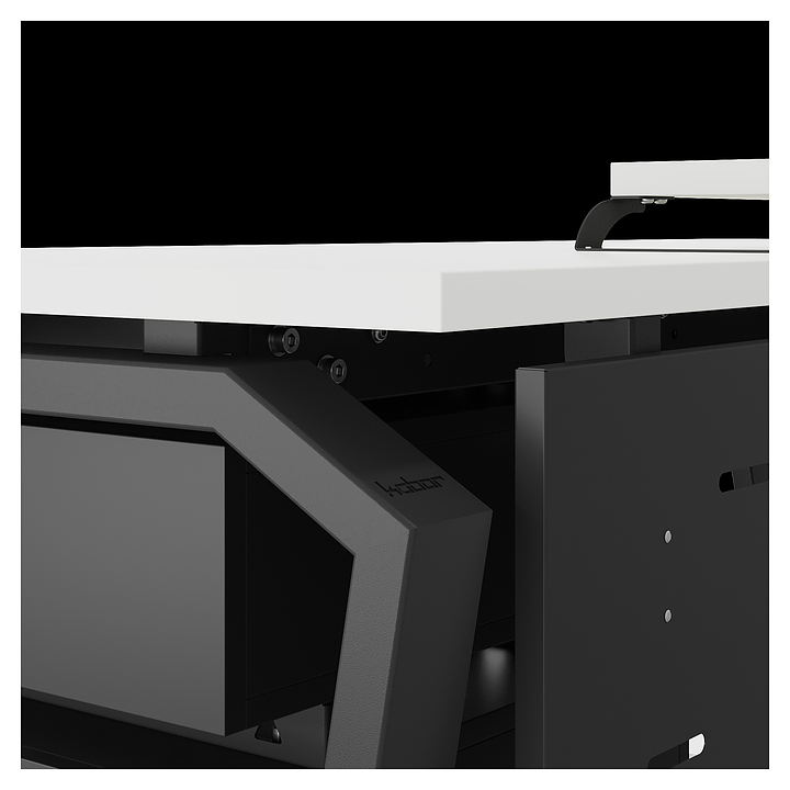 Офисный стол Кобор TB-100/80 black/premium используется в офисных помещениях и кабинетах руководителей. Модель оснащена опорами в форме обратной трапеции со скошенными верхними углами. Каркас выполнен из металла, выкрашенного в цвет черный муар (RAL9005), столешница – из ламинированной древесно-стружечной плиты (ЛДСП) цвета белый премиум (W1000 S9). Опции (заказываются отдельно):