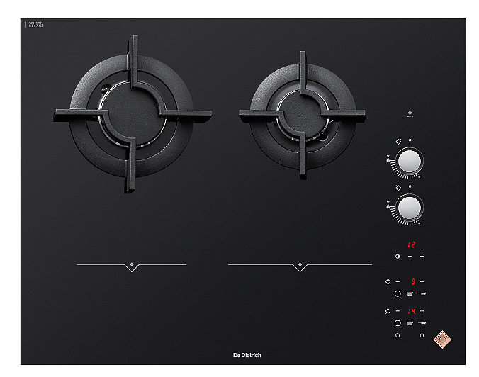 Варочная панель De Dietrich DPI7602BM предназначена для приготовления или разогрева широкого спектра блюд в наплитной посуде в квартирах и частных домах. Модель оснащена сенсорной панелью управления, поворотными регуляторами, газ-контролем и электроподжигом. Панель управления и индукционная поверхность выполнены из стеклокерамики, решетки - из чугуна. Особенности: