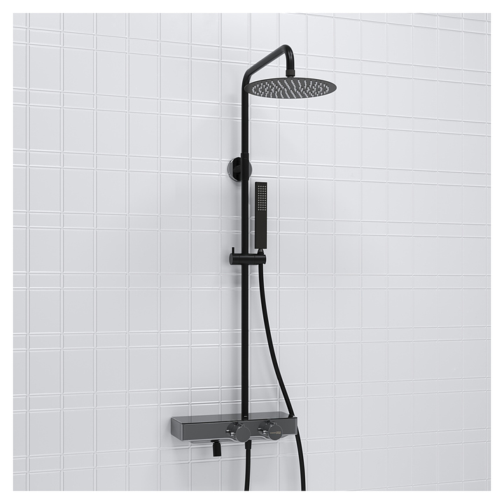 Душевая система с термостатическим смесителем Wasserkraft A114.258.218.CB Thermo хром, черный soft-touch