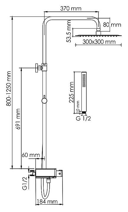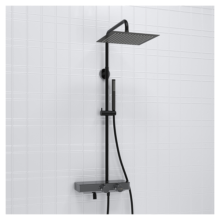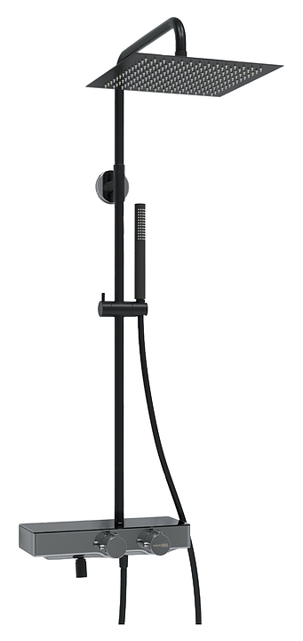 Душевая система с термостатическим смесителем Wasserkraft A114.162.217.CB Thermo хром, черный soft-touch