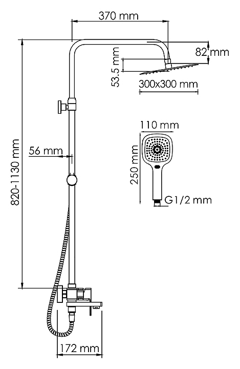 Душевая система со смесителем Wasserkraft A177.118.065.010.CH хром