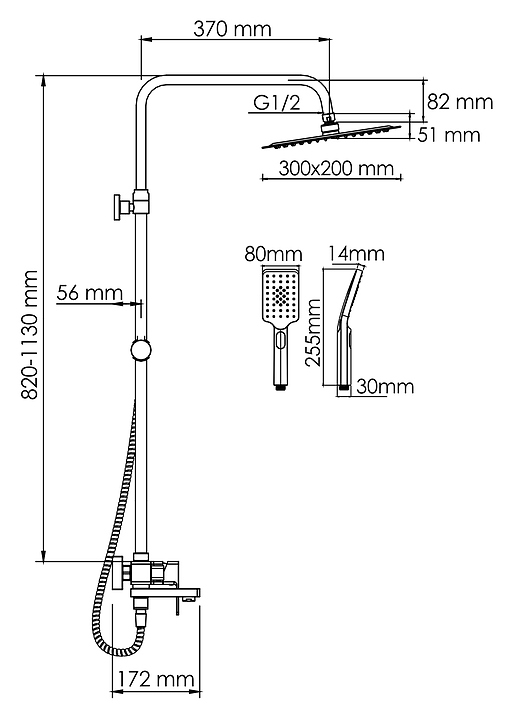 Душевая система со смесителем Wasserkraft A177.069.126.010.CH хром