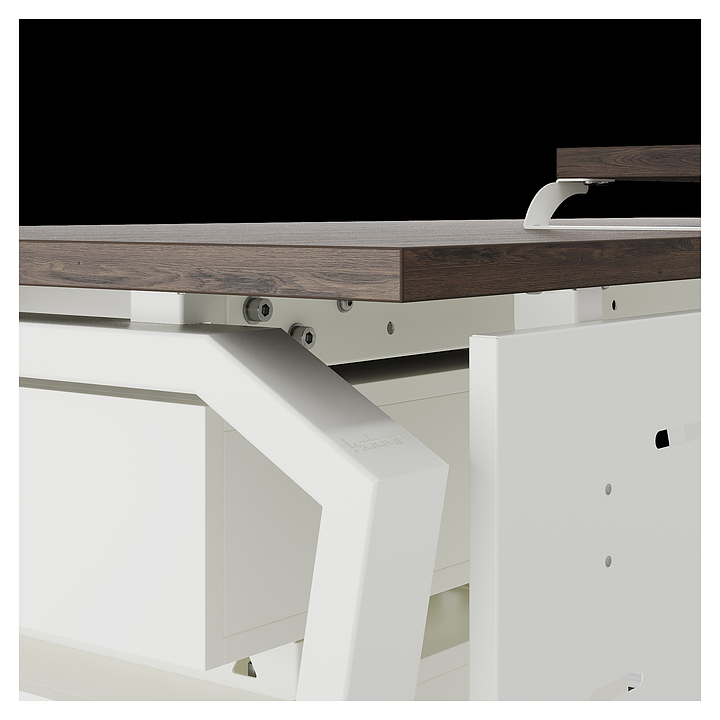Офисный стол Кобор TB-180/60 white/charlston используется в офисных помещениях и кабинетах руководителей. Модель оснащена опорами в форме обратной трапеции со скошенными верхними углами. Каркас выполнен из металла, выкрашенного в цвет белый муар (RAL9016), столешница – из ламинированной древесно-стружечной плиты (ЛДСП) цвета дуб чарльстон (H3154 ST36). Опции (заказываются отдельно):