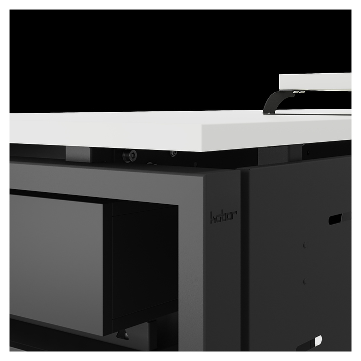 Офисный стол Кобор TS1-140/70 black/premium используется в офисных помещениях и кабинетах руководителей. Модель оснащена опорами в форме наклонной трапеции. Каркас выполнен из металла, выкрашенного в цвет черный муар (RAL9005), столешница – из ламинированной древесно-стружечной плиты (ЛДСП) цвета белый премиум (W1000 S9). Опции (заказываются отдельно):