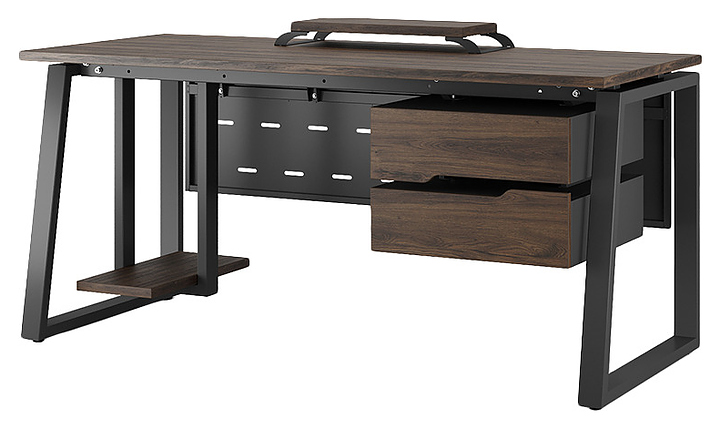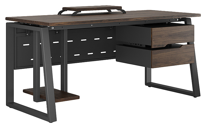 Офисный стол Кобор TS1-100/70 black/charlston используется в офисных помещениях и кабинетах руководителей. Модель оснащена опорами в форме наклонной трапеции. Каркас выполнен из металла, выкрашенного в цвет черный муар (RAL9005), столешница – из ламинированной древесно-стружечной плиты (ЛДСП) цвета дуб чарльстон (H3154 ST36). Опции (заказываются отдельно):