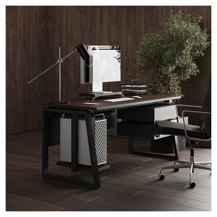 Офисный стол Кобор TS1-180/70 black/charlston используется в офисных помещениях и кабинетах руководителей. Модель оснащена опорами в форме наклонной трапеции. Каркас выполнен из металла, выкрашенного в цвет черный муар (RAL9005), столешница – из ламинированной древесно-стружечной плиты (ЛДСП) цвета дуб чарльстон (H3154 ST36). Опции (заказываются отдельно):