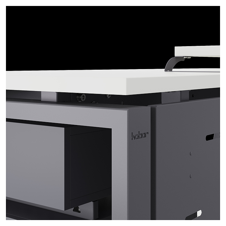 Офисный стол Кобор TS1-120/70 graphite/premium используется в офисных помещениях и кабинетах руководителей. Модель оснащена опорами в форме наклонной трапеции. Каркас выполнен из металла, выкрашенного в цвет графит муар (RAL7024), столешница – из ламинированной древесно-стружечной плиты (ЛДСП) цвета белый премиум (W1000 ST9). Опции (заказываются отдельно):