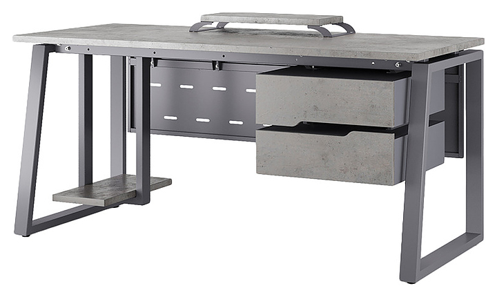 Офисный стол Кобор TS1-180/60 graphite/chicago используется в офисных помещениях и кабинетах руководителей. Модель оснащена опорами в форме наклонной трапеции. Каркас выполнен из металла, выкрашенного в цвет графит муар (RAL7024), столешница – из ламинированной древесно-стружечной плиты (ЛДСП) цвета бетон чикаго (F186 ST9). Опции (заказываются отдельно):