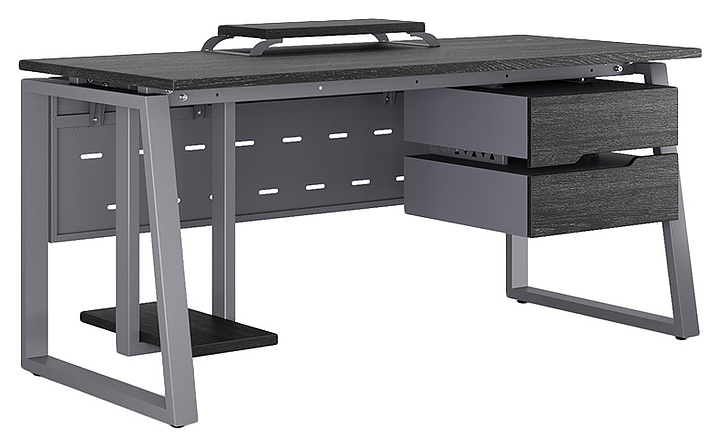 Офисный стол Кобор TS1-80/80 graphite/glazed используется в офисных помещениях и кабинетах руководителей. Модель оснащена опорами в форме наклонной трапеции. Каркас выполнен из металла, выкрашенного в цвет графит муар (RAL7024), столешница – из ламинированной древесно-стружечной плиты (ЛДСП) цвета черный дуб (H3178 ST37). Опции (заказываются отдельно):
