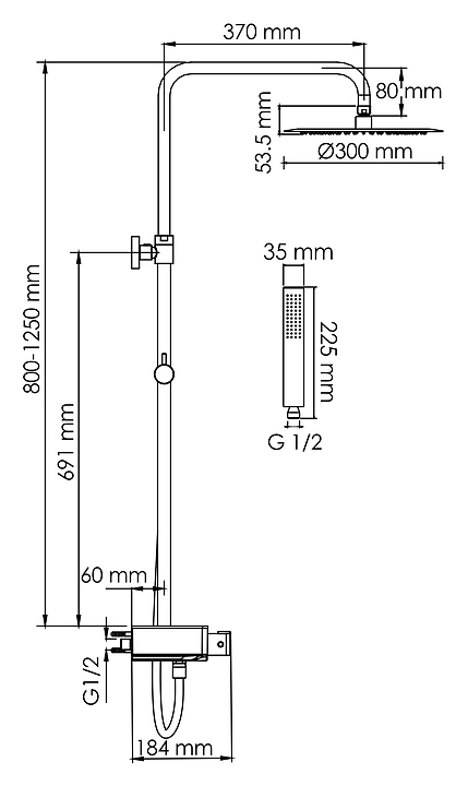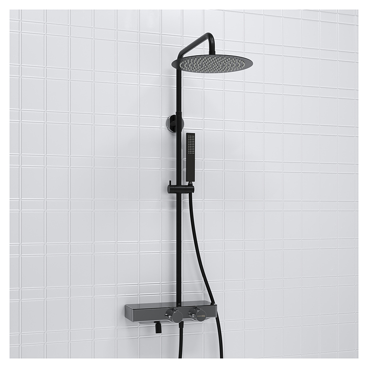 Душевая система с термостатическим смесителем Wasserkraft A114.160.218.CB Thermo хром, черный soft-touch