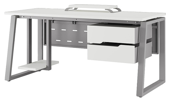 Офисный стол Кобор TS1-180/80 aluminum/premium используется в офисных помещениях и кабинетах руководителей. Модель оснащена опорами в форме наклонной трапеции. Каркас выполнен из металла, выкрашенного в цвет алюминиевый металлик (RAL9006), столешница – из ламинированной древесно-стружечной плиты (ЛДСП) цвета белый премиум (W1000 ST9). Опции (заказываются отдельно):