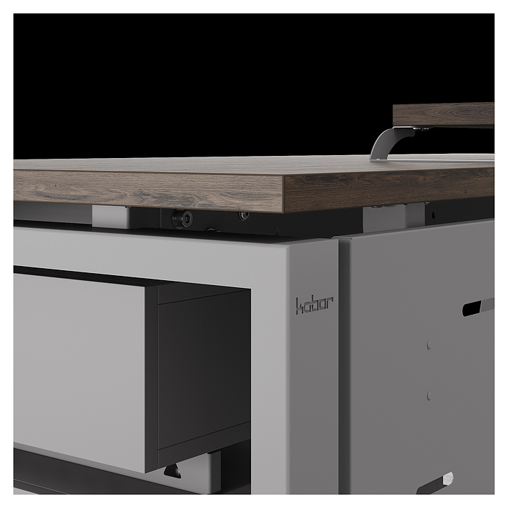 Офисный стол Кобор TS1-100/60 aluminum/charlston используется в офисных помещениях и кабинетах руководителей. Модель оснащена опорами в форме наклонной трапеции. Каркас выполнен из металла, выкрашенного в цвет алюминиевый металлик (RAL9006), столешница – из ламинированной древесно-стружечной плиты (ЛДСП) цвета дуб чарльстон (H3154 ST36). Опции (заказываются отдельно):