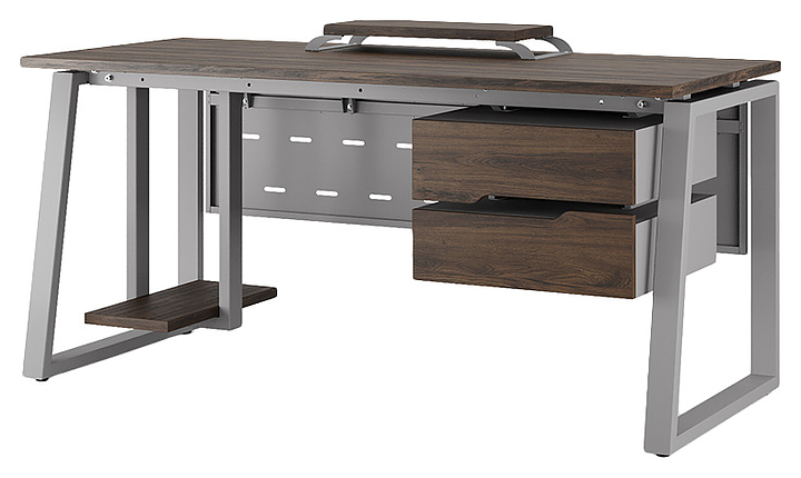 Офисный стол Кобор TS1-180/60 aluminum/charlston используется в офисных помещениях и кабинетах руководителей. Модель оснащена опорами в форме наклонной трапеции. Каркас выполнен из металла, выкрашенного в цвет алюминиевый металлик (RAL9006), столешница – из ламинированной древесно-стружечной плиты (ЛДСП) цвета дуб чарльстон (H3154 ST36). Опции (заказываются отдельно):