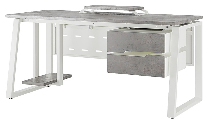 Офисный стол Кобор TS1-140/80 white/chicago используется в офисных помещениях и кабинетах руководителей. Модель оснащена опорами в форме наклонной трапеции. Каркас выполнен из металла, выкрашенного в цвет белый муар (RAL9016), столешница – из ламинированной древесно-стружечной плиты (ЛДСП) цвета бетон чикаго (F186 ST9). Опции (заказываются отдельно):