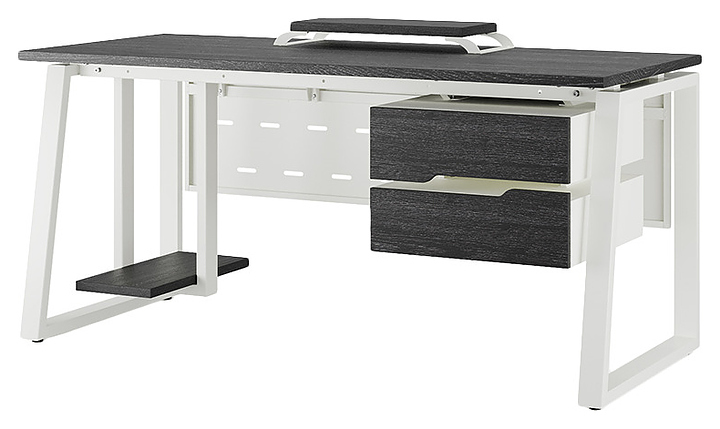 Офисный стол Кобор TS1-180/70 white/glazed используется в офисных помещениях и кабинетах руководителей. Модель оснащена опорами в форме наклонной трапеции. Каркас выполнен из металла, выкрашенного в цвет белый муар (RAL9016), столешница – из ламинированной древесно-стружечной плиты (ЛДСП) цвета черный дуб (H3178 ST37). Опции (заказываются отдельно):