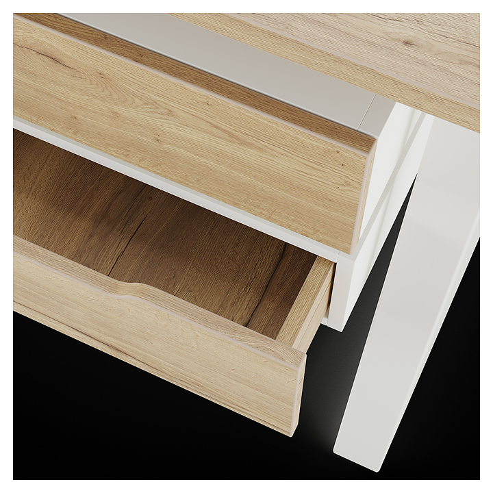 Офисный стол Кобор TS1-80/80 white/natural используется в офисных помещениях и кабинетах руководителей. Модель оснащена опорами в форме наклонной трапеции. Каркас выполнен из металла, выкрашенного в цвет белый муар (RAL9016), столешница – из ламинированной древесно-стружечной плиты (ЛДСП) цвета натуральный дуб (H1180 ST37). Опции (заказываются отдельно):
