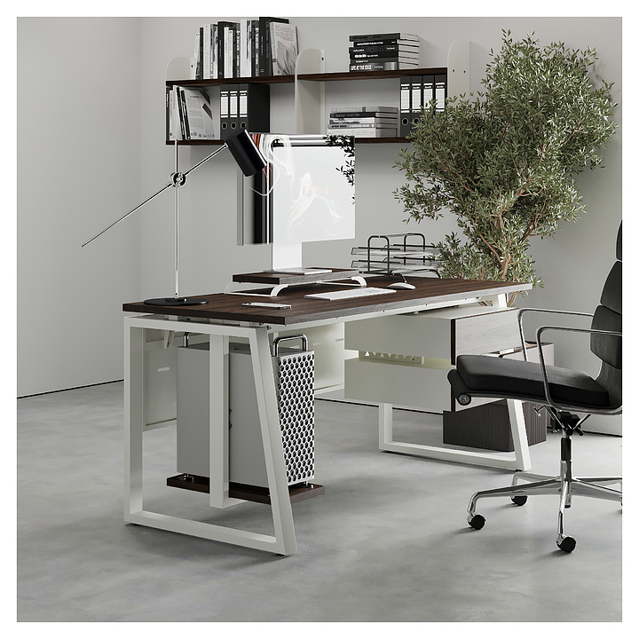 Офисный стол Кобор TS1-120/60 white/charlston используется в офисных помещениях и кабинетах руководителей. Модель оснащена опорами в форме наклонной трапеции. Каркас выполнен из металла, выкрашенного в цвет белый муар (RAL9016), столешница – из ламинированной древесно-стружечной плиты (ЛДСП) цвета дуб чарльстон (H3154 ST36). Опции (заказываются отдельно):