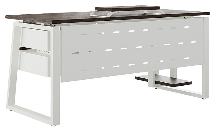 Офисный стол Кобор TS1-160/60 white/charlston используется в офисных помещениях и кабинетах руководителей. Модель оснащена опорами в форме наклонной трапеции. Каркас выполнен из металла, выкрашенного в цвет белый муар (RAL9016), столешница – из ламинированной древесно-стружечной плиты (ЛДСП) цвета дуб чарльстон (H3154 ST36). Опции (заказываются отдельно):