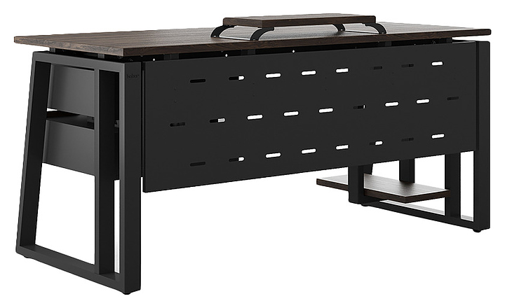 Офисный стол Кобор TS2-180/60 black/chicago используется в офисных помещениях и кабинетах руководителей. Модель оснащена усиленными вертикальными балками опорами в форме наклонной трапеции. Каркас выполнен из металла, выкрашенного в цвет черный муар (RAL9005), столешница – из ламинированной древесно-стружечной плиты (ЛДСП) цвета бетон чикаго (F186 ST9). Опции (заказываются отдельно):