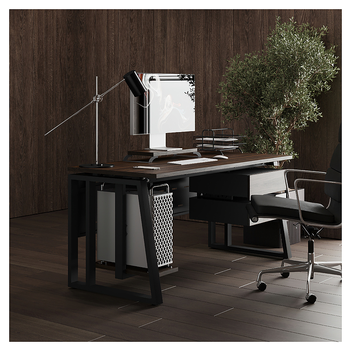 Офисный стол Кобор TS2-140/70 black/charlston используется в офисных помещениях и кабинетах руководителей. Модель оснащена усиленными вертикальными балками опорами в форме наклонной трапеции. Каркас выполнен из металла, выкрашенного в цвет черный муар (RAL9005), столешница – из ламинированной древесно-стружечной плиты (ЛДСП) цвета дуб чарльстон (H3154 ST36). Опции (заказываются отдельно):