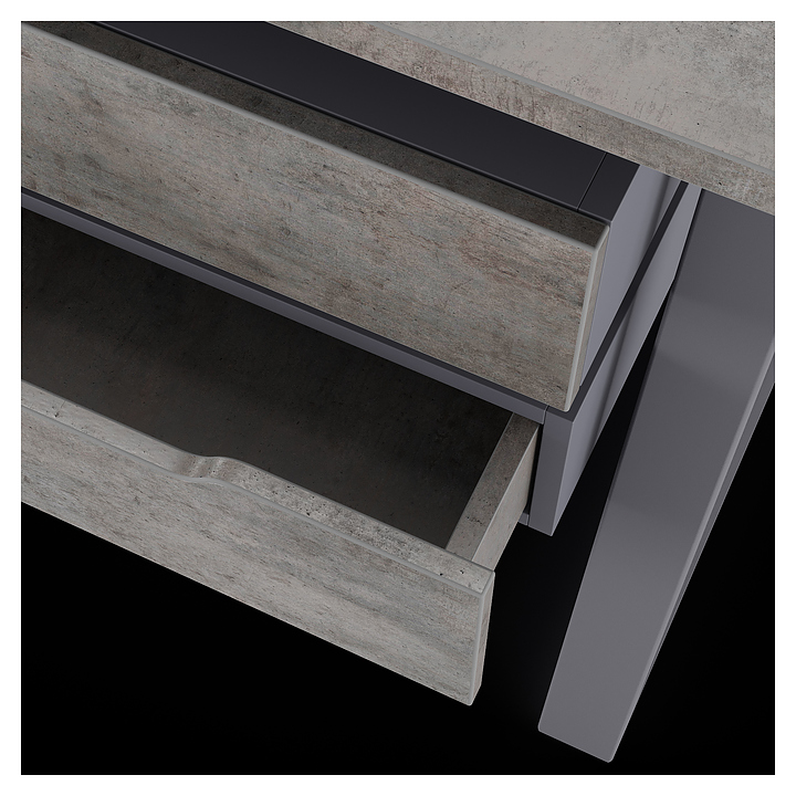 Офисный стол Кобор TS2-140/80 graphite/chicagoиспользуется в офисных помещениях и кабинетах руководителей. Модель оснащена усиленными вертикальными балками опорами в форме наклонной трапеции. Каркас выполнен из металла, выкрашенного в цвет графит муар (RAL7024), столешница – из ламинированной древесно-стружечной плиты (ЛДСП) цвета бетон чикаго (F186 ST9). Опции (заказываются отдельно):