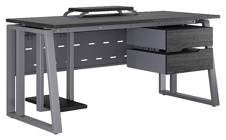 Офисный стол Кобор TS2-100/70 graphite/glazed используется в офисных помещениях и кабинетах руководителей. Модель оснащена усиленными вертикальными балками опорами в форме наклонной трапеции. Каркас выполнен из металла, выкрашенного в цвет графит муар (RAL7024), столешница – из ламинированной древесно-стружечной плиты (ЛДСП) цвета черный дуб (H3178 ST37). Опции (заказываются отдельно):