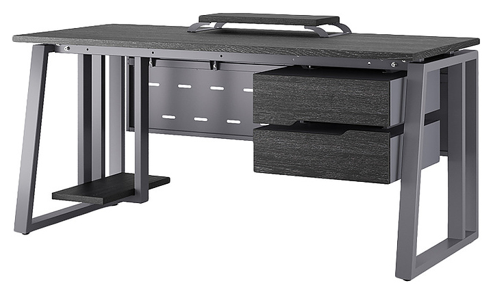 Офисный стол Кобор TS2-180/70 graphite/glazed используется в офисных помещениях и кабинетах руководителей. Модель оснащена усиленными вертикальными балками опорами в форме наклонной трапеции. Каркас выполнен из металла, выкрашенного в цвет графит муар (RAL7024), столешница – из ламинированной древесно-стружечной плиты (ЛДСП) цвета черный дуб (H3178 ST37). Опции (заказываются отдельно):