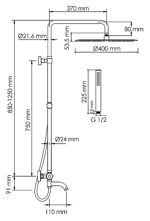 Душевая система с термостатическим смесителем Wasserkraft A188.117.137.087.CH Thermo хром