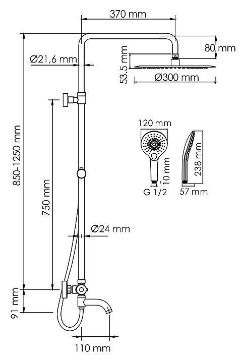 Душевая система с термостатическим смесителем Wasserkraft A188.116.101.087.CH Thermo хром