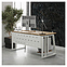 Офисный стол Кобор TS2-160/80 white/natural используется в офисных помещениях и кабинетах руководителей. Модель оснащена усиленными вертикальными балками опорами в форме наклонной трапеции. Каркас выполнен из металла, выкрашенного в цвет белый муар (RAL9016), столешница – из ламинированной древесно-стружечной плиты (ЛДСП) цвета натуральный дуб (H1180 ST37). Опции (заказываются отдельно):