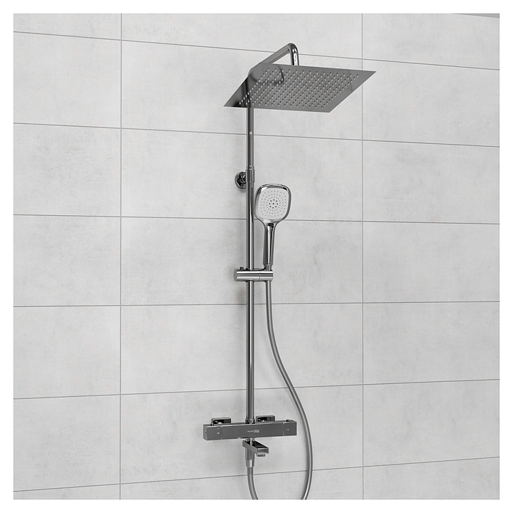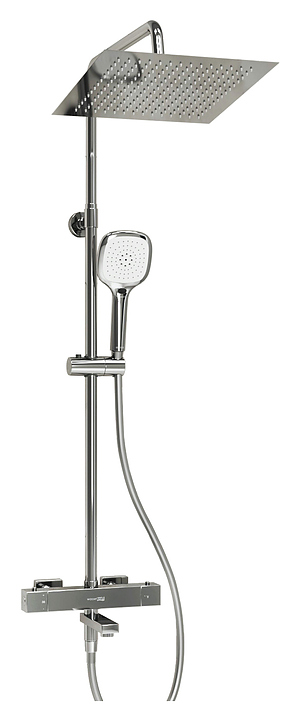 Душевая система Wasserkraft A199.118.065.087.CH Thermo предназначена для использования в ванных помещениях для подачи горячей и холодной воды. Модель оснащена прямоугольным верхним тропическим душем с насадкой "Ливневый дождь", регулируемой по высоте стойкой для душа, квадратной трехфункциональной ручной лейкой с системой защиты от известковых отложений и шлангом, термостатическим картриджем, обеспечивающим поддержание необходимой температуры в независимости от давления воды, а также аэратором для создания мягкой ровной струи без разбрызгивания. Изделие выполнено из высококачественной латуни, отличающейся прочностью, долговечностью и устойчивостью к перепадам температур, верхний душ - из нержавеющей стали, шланг - из ПВХ. Особенности: