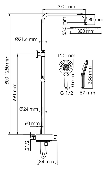 Душевая система с термостатическим смесителем Wasserkraft A113.118.101.CH Thermo хром