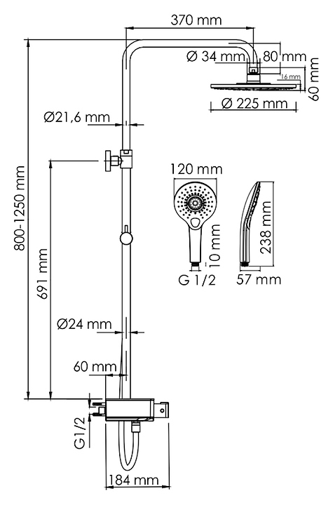 Душевая система с термостатическим смесителем Wasserkraft A113.067.101.CH Thermo хром