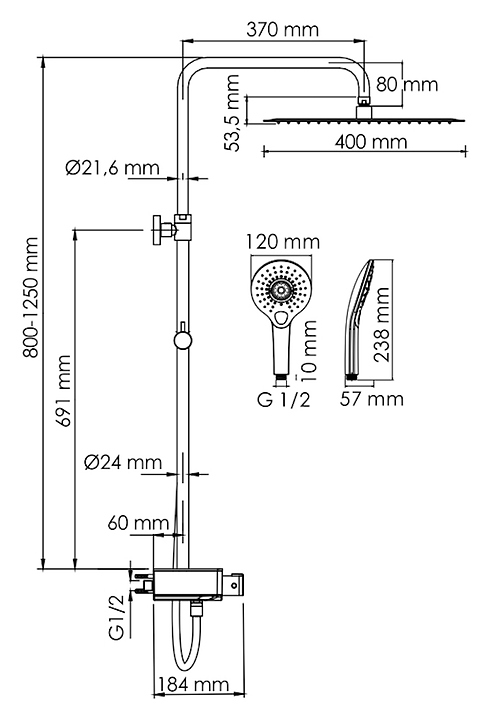Душевая система с термостатическим смесителем Wasserkraft A113.119.101.CH Thermo хром