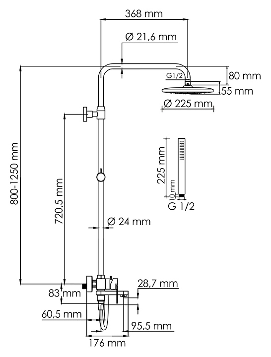 Душевая система Wasserkraft A174.077.217.CB предназначена для использования в ванных помещениях для подачи горячей и холодной воды. Модель оснащена смесителем для ванны с коротким изливом, круглым верхним тропическим душем с насадкой "Ливневый дождь", регулируемой по высоте стойкой для душа, прямоугольной однофункциональной ручной лейкой с системой защиты от известковых отложений и шлангом, керамическим картриджем, обеспечивающим плавный ход рычага смесителя, контроль и точность при выборе напора и температуры воды, а также аэратором для создания мягкой ровной струи без разбрызгивания. Изделие выполнено из высококачественной латуни, отличающейся прочностью, долговечностью и устойчивостью к перепадам температур, верхний душ - из нержавеющей стали, шланг - из ПВХ. Особенности:
