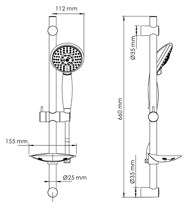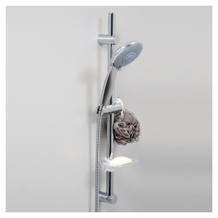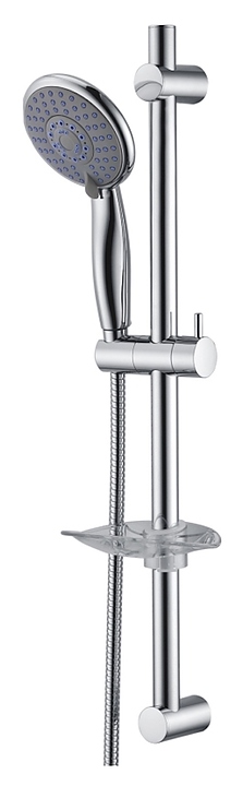 Душевой комплект Wasserkraft A004 используется в ванных комнатах. Модель оснащена пятифункциональным ручным душем с системой защиты от известковых отложений, металлическим душевым шлангом, пластиковой мыльницей, а также регулируемой штангой с держателем для ручной лейки. Изделие выполнено из ABS-пластика и нержавеющей стали. В комплект поставки входят штанга, ручной душ, шланг, мыльница и набор для монтажа. Особенности: