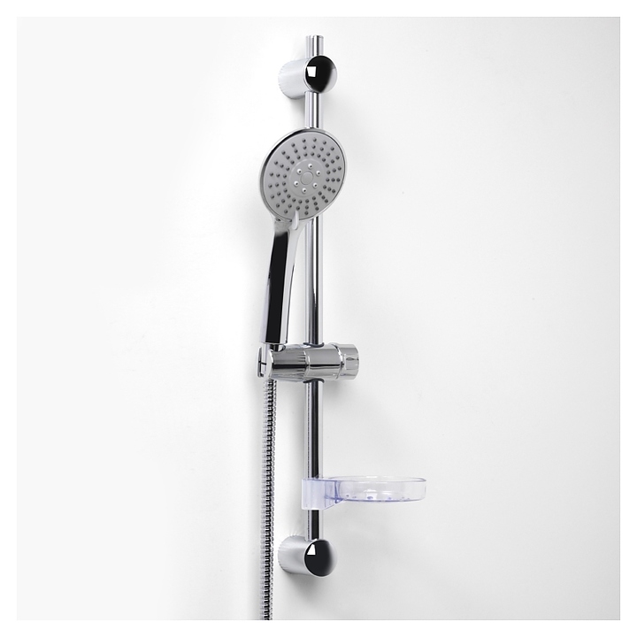 Душевой комплект Wasserkraft A005 используется в ванных комнатах. Модель оснащена трехфункциональным ручным душем с системой защиты от известковых отложений, металлическим душевым шлангом, пластиковой мыльницей, а также регулируемой штангой с поворотным держателем для ручной лейки. Изделие выполнено из ABS-пластика и нержавеющей стали. В комплект поставки входят штанга, ручной душ, шланг, мыльница и набор для монтажа. Особенности: