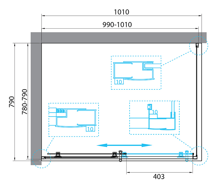Уголок душевой BelBagno UNO-195-AH-1-100/80-P-Cr 100х80х195 см